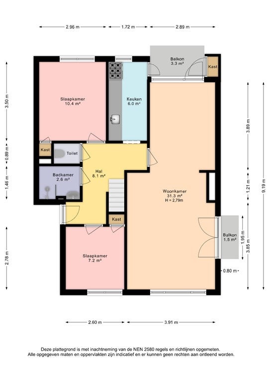 - De portiekflat heeft een woonoppervlakte van 120 m² en beschikt over 5 kamers, waarvan 4 slaapkamers;