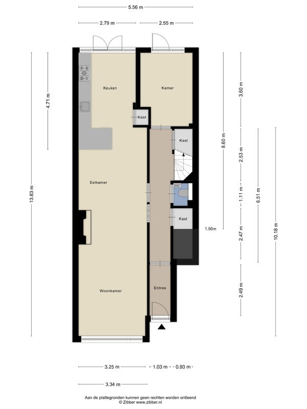 - De benedenwoning heeft een woonoppervlakte van 98 m² en beschikt over 4 kamers, waarvan 2 slaapkamers;