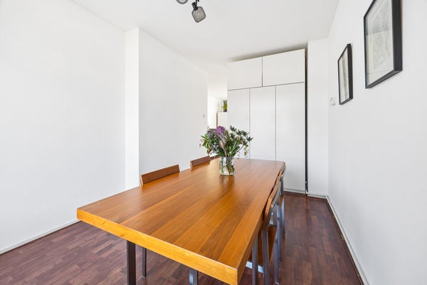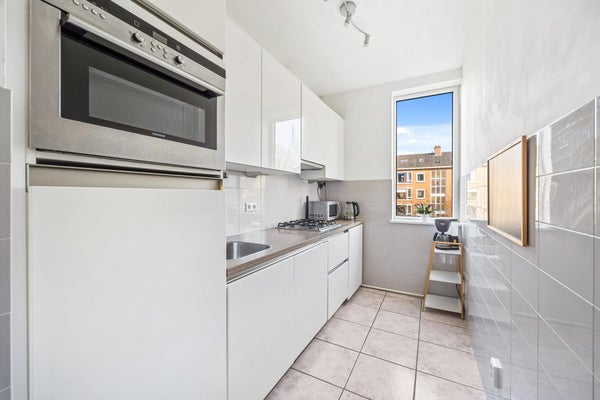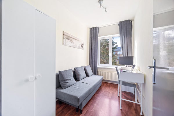 - De portiekwoning heeft een woonoppervlakte van 62 m² en beschikt over 3 kamers, waarvan 2 slaapkamers;