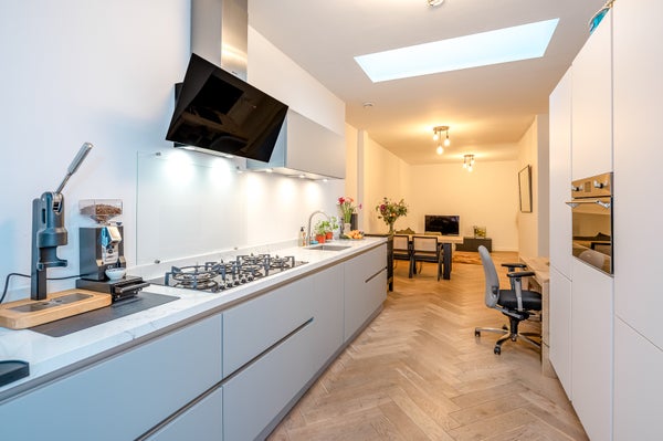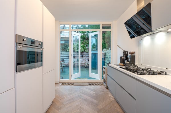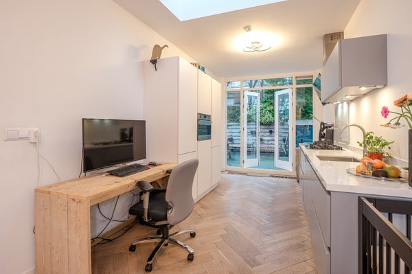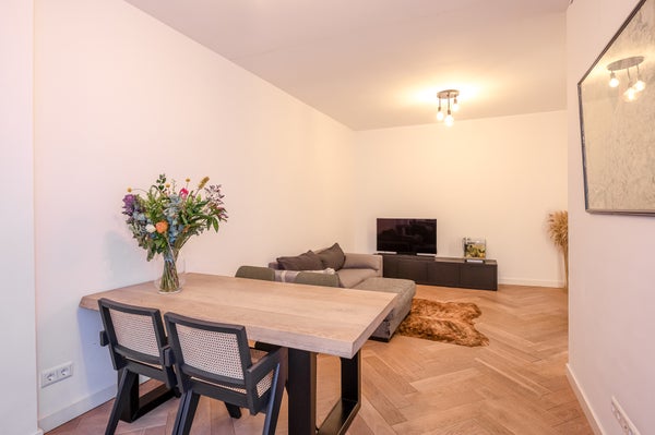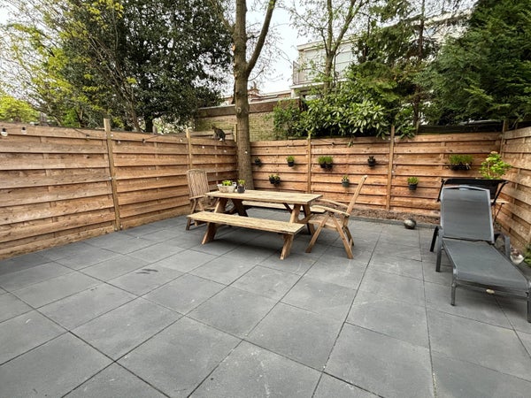 Dit moderne appartement van circa 96 m² is gelegen op de parterre en biedt 2 slaapkamers en 2 badkamers, evenals een gezellige achtertuin. Het appartement, gerenoveerd in 2020, bevindt zich op een uitstekende locatie nabij de Rijswijkse Herenstraat, met goede openbaar vervoersverbindingen naar Delft en Den Haag. De indeling is als volgt: vanuit de gemeenschappelijke entree kom je in de hal, waar de grote slaapkamer met eigen badkamer zich aan de voorzijde bevindt. Verder zijn er nog een opslagruimte, toilet en een tweede badkamer. De woon-/eetkamer met open keuken beschikt over openslaande deuren naar de achtertuin. De moderne keuken is voorzien van diverse apparatuur. Het appartement heeft een energielabel B en is volledig geïsoleerd.