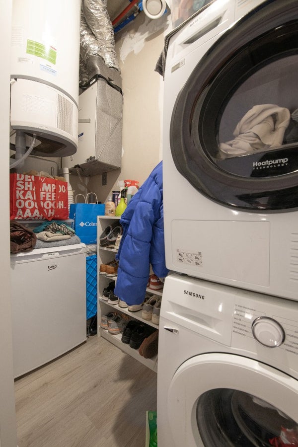 De witgoedaansluiting en de elektrische boiler bevinden zich in de inpandige berging.