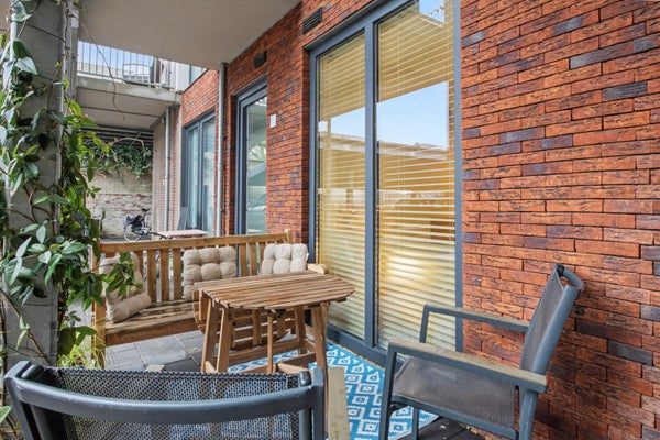 Het appartement ligt op de begane grond en is via de achterzijde van het complex toegankelijk.