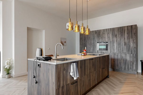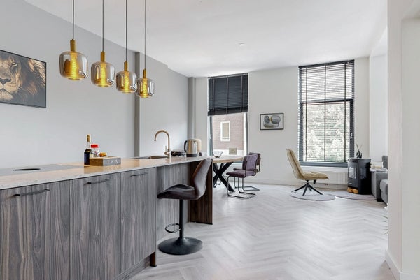 Dit ruime appartement in de historische binnenstad van Roermond biedt alles wat je nodig hebt voor comfortabel wonen en werken. Bij binnenkomst kom je in een kantoorruimte met kitchenette en veel licht, ideaal voor een inspirerende werkomgeving. Op de eerste verdieping vind je een lichte woonkamer met open keuken, waar je kunt genieten van kookplezier dankzij moderne apparatuur en voldoende ruimte voor een eethoek. De masterbedroom op de tweede verdieping biedt genoeg ruimte voor een groot bed en kasten, terwijl de luxe badkamer is uitgerust met een douche, vrijstaand ligbad en wastafel. De aparte toiletten zijn handig voor je gasten. Een inpandige garage en kelder bieden extra opbergruimte. Dit appartement ligt op loopafstand van winkels, restaurants en het bruisende centrum.