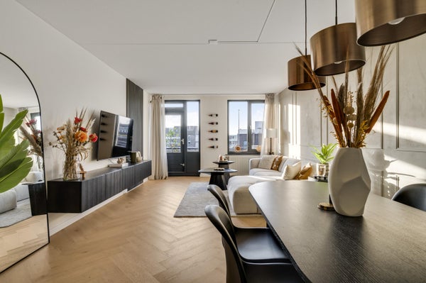 - De galerijflat heeft een woonoppervlakte van 126 m² en beschikt over 6 kamers, waarvan 2 slaapkamers;