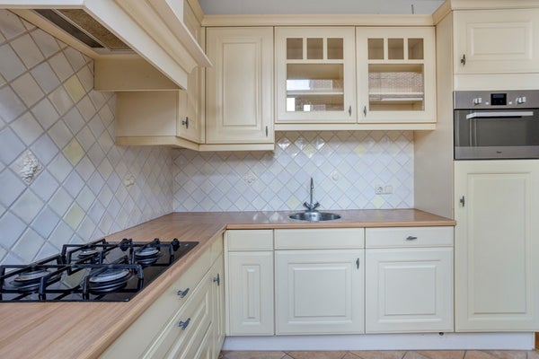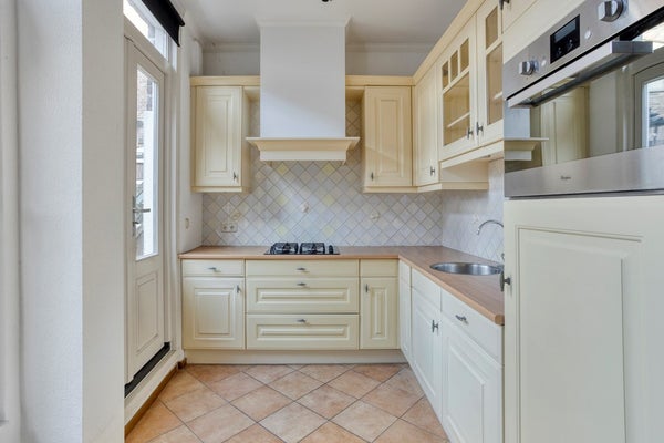 De halfopen keuken sluit perfect aan op de woonkamer en is van alle gemakken voorzien, waaronder een gasfornuis, afzuigkap, koelkast, combi-oven en vaatwasser. Vanuit de keuken heb je direct toegang tot het royale dakterras op het westen. Een heerlijke plek om tot rust te komen of te borrelen in de avondzon.
