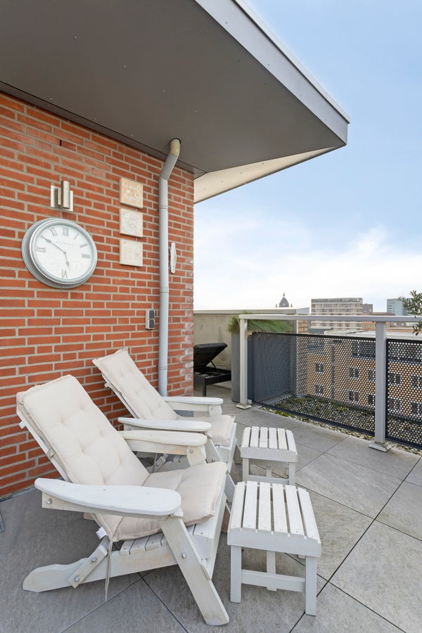 - Het penthouse heeft een woonoppervlakte van 87 m² en beschikt over 5 kamers, waarvan 2 slaapkamers;