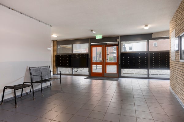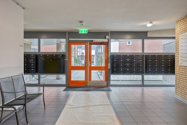 Centrale entreehal met brievenbussen, intercom en liftinstallatie. Parkeergarage en bergingen vanaf dit niveau bereikbaar. waar dit appartement over een eigen parkeerplaats en berging beschikt.