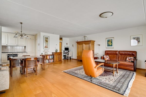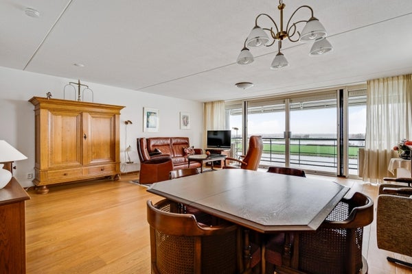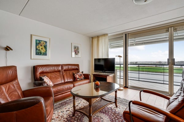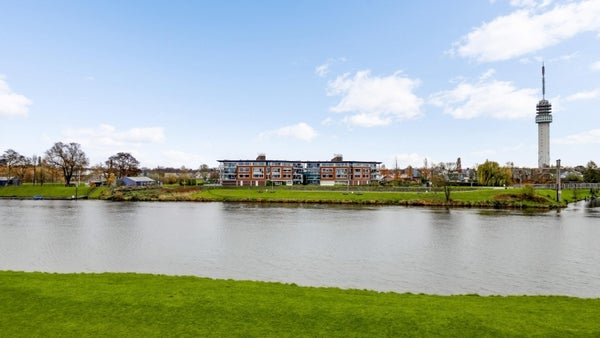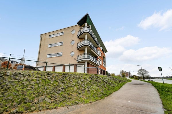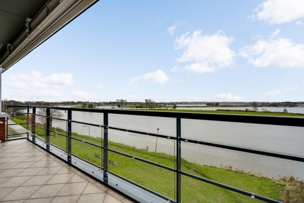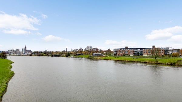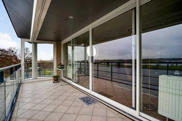 Dit bijzondere appartement met twee slaapkamers bevindt zich op de bovenste verdieping van complex Pont Rouge aan de Abdis Aleydisstraat 55 in Roermond. Het biedt adembenemend uitzicht op de Maas en de Maasplassen. De centrale entree met lift leidt naar de ruime living die baadt in natuurlijk licht dankzij de brede raampartijen. Aangrenzend vindt u een zonnig balkon met elektrische zonwering, perfect voor ontspanning. De open keuken is volledig uitgerust en sluit aan op een praktische berging. Verder zijn er twee comfortabele slaapkamers en een complete badkamer. In de rustige woonwijk Hammerveld zijn basisschool en wandelroutes dichtbij. De bereikbaarheid is uitstekend via de A73 en A2. Dit appartement combineert luxe, rust en stadsvoordelen. Woonoppervlakte: ca. 97 m². Energielabel B.