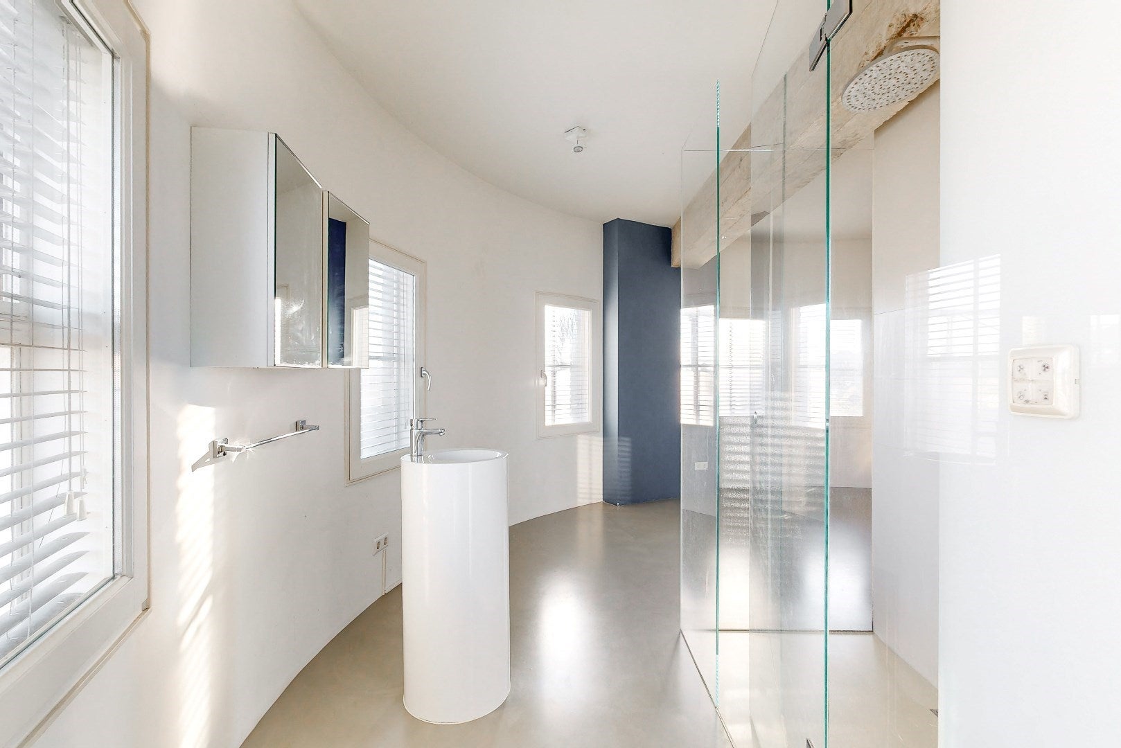 In het hart van Roermond staat een bijzonder gebouw, oorspronkelijk een watertoren uit 1928. Dit beleggingsobject omvat een kantoor/studio op de begane grond van circa 40 m² en een appartement van ongeveer 117 m², gelegen op de eerste tot derde verdieping. Beide ruimtes zijn momenteel verhuurd. De studio heeft een eigen entree en biedt een woonkamer met open keuken, uitgerust met een gasfornuis en vaatwasser. De badkamer beschikt over een douche en toilet. Het appartement heeft een aparte ingang en drie verdiepingen, met een slaapkamer of woonkamer en een grote woonkeuken. De locatie biedt een goede bereikbaarheid van voorzieningen en ligt op enkele minuten van de autosnelweg A73. Het totale perceel heeft een oppervlakte van 45 m².
