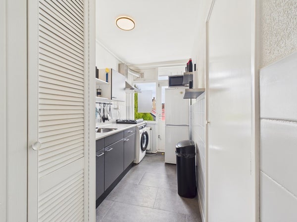 - De portiekflat heeft een woonoppervlakte van 67 m² en beschikt over 3 kamers, waarvan 2 slaapkamers;