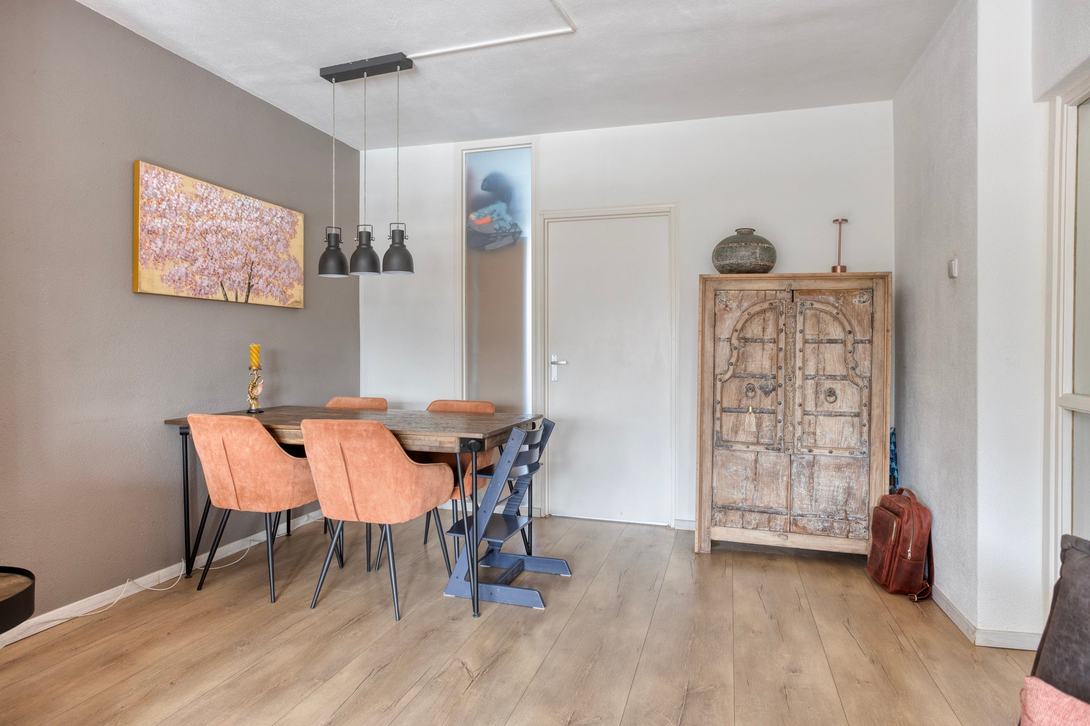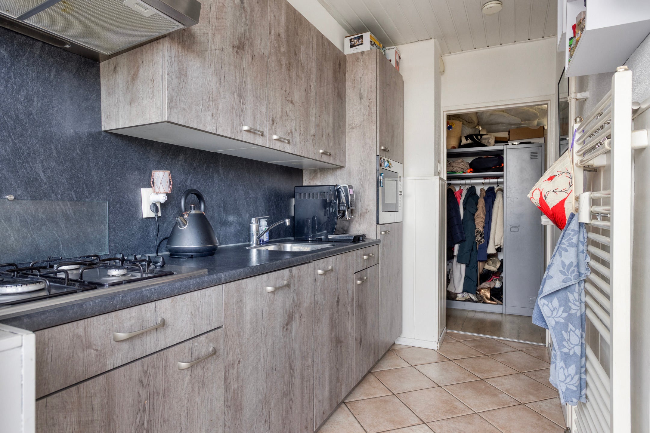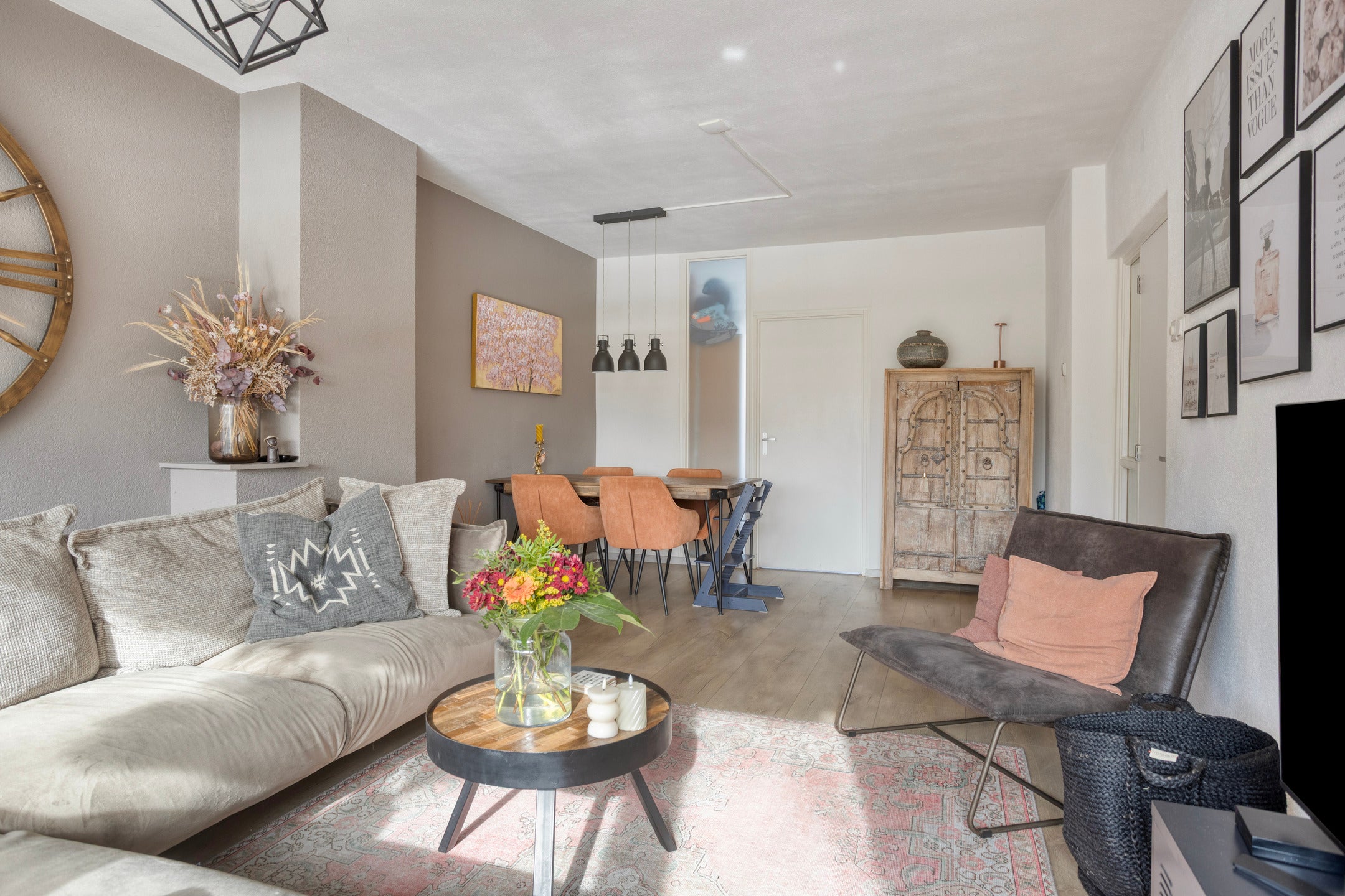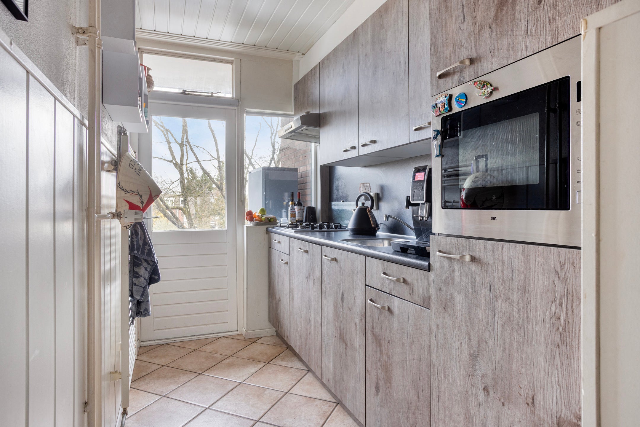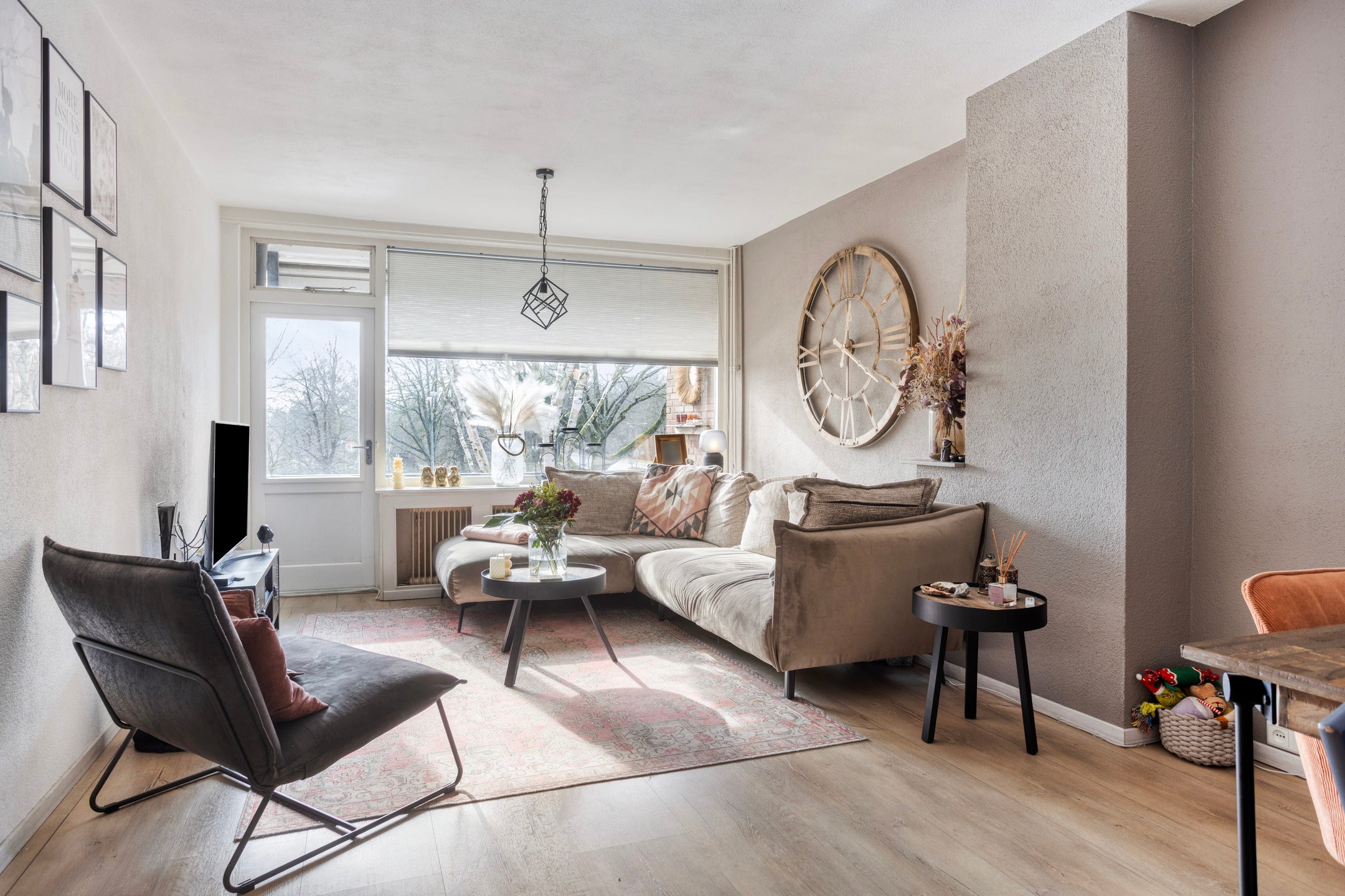 Bij binnenkomst word je verwelkomd door een frisse hal met een nette laminaatvloer. De gezellige woonkamer heeft ruimte voor een zithoek en een eettafel. De gesloten keuken, ingericht met een houtkleur en donker werkblad, is van alle gemakken voorzien.