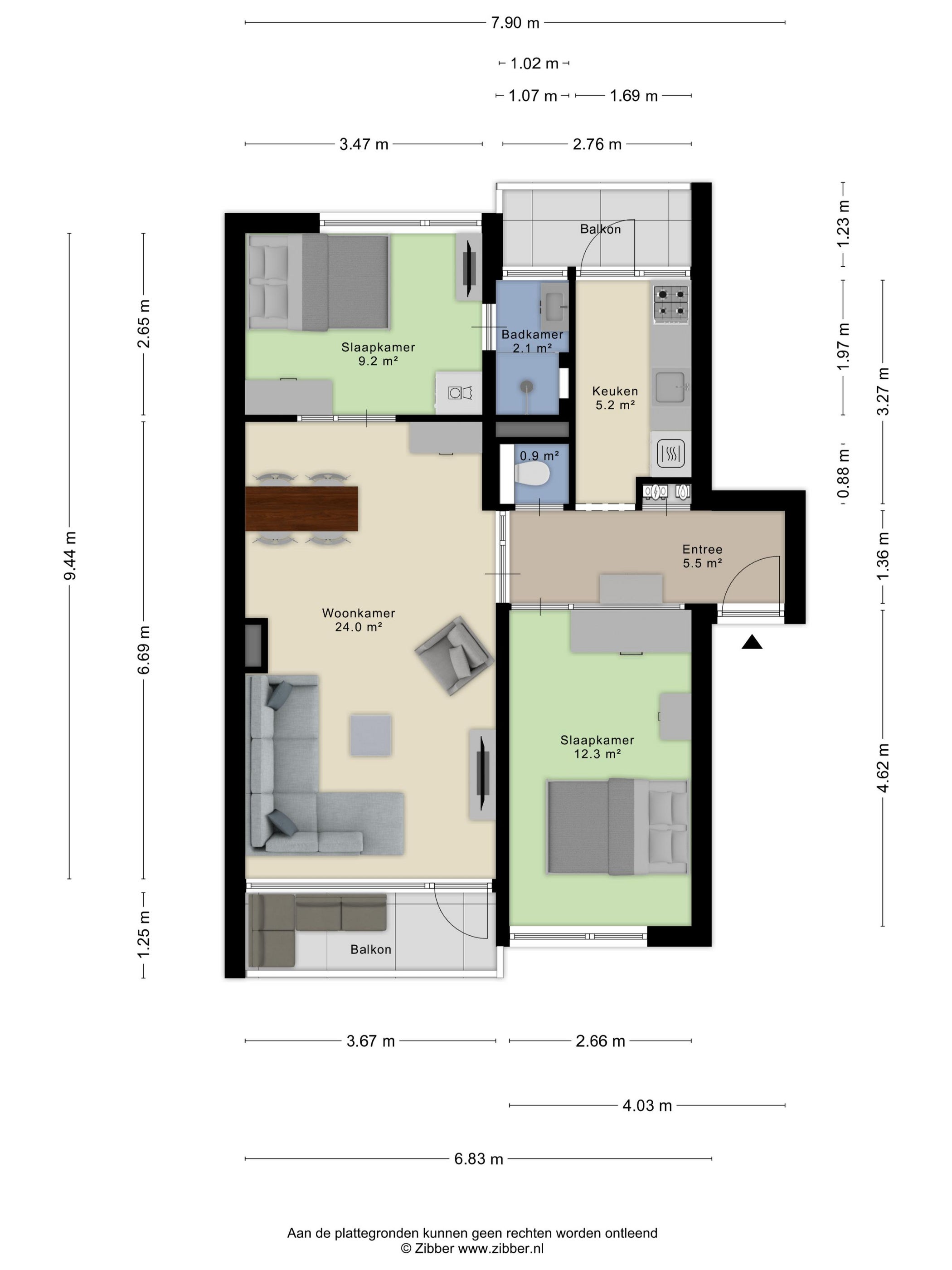 - De galerijflat heeft een woonoppervlakte van 63 m² en beschikt over 3 kamers, waarvan 2 slaapkamers;