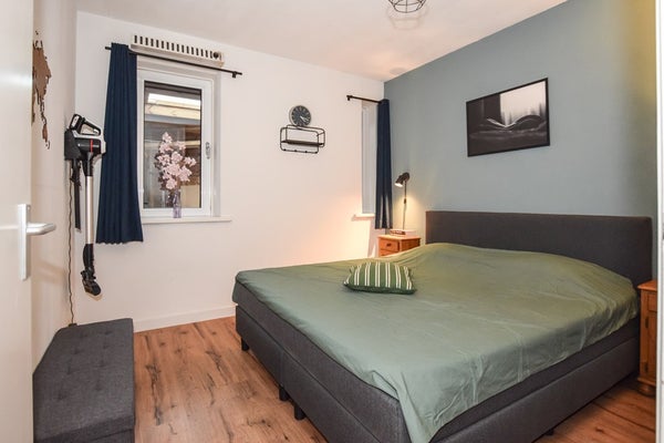 De slaapkamer is gelegen aan de achterzijde (en tevens de rustige kant, net zoals de woonkamer) van dit appartement en beschikt over een grote inbouwkast, welke is voorzien van schuifdeuren. De vloer is hier voorzien van laminaat en de wanden zijn ook hier modern afgewerkt met spuitwerk.