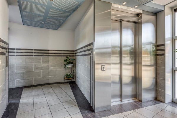 Centrale entree met video-intercominstallatie en brievenbustableau. De hal is ook voor minder validen goed te bereiken. De hal is op fraaie wijze afgewerkt met tegelwerk en grote liftcabine.