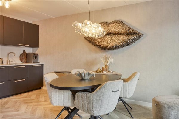 De keuken, compleet met modern inbouwapparatuur, is de droom van iedere thuiskok. Hier bereid je met gemak een snelle maaltijd voor doordeweeks, maar ook een uitgebreid diner als je in de stemming bent om te kokkerellen. Strakke lijnen, een neutraal kleurenpalet en slimme opbergmogelijkheden zijn hier helemaal van toepassing.