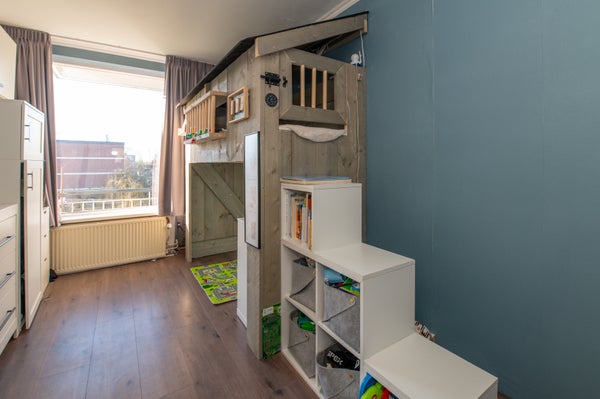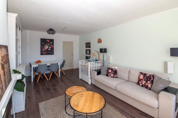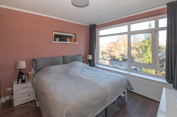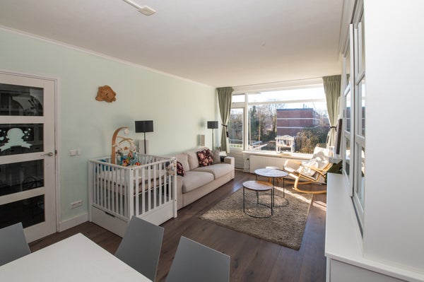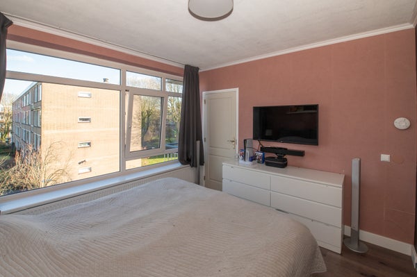 Dit instapklare 3-kamer hoekappartement op de 2e verdieping biedt een prachtig vrij uitzicht over een park. Geniet van de ochtendzon aan de voorkant en de middag- en avondzon op het achterbalkon. De woning heeft een lichte woonkamer met een elektrische haard, een aparte keuken en twee ruime slaapkamers. De compacte badkamer en het toilet zijn praktisch ingericht. In de onderbouw vind je een grote berging. Dit appartement is goed bereikbaar en ligt dichtbij openbaar vervoer en winkels. De keuken en badkamer zijn in 2020 vernieuwd. Het energielabel is D, met kunststof kozijnen aan de voorkant en houten aan de achterkant. De VvE is klein en goed onderhouden. De bijdrage is € 175 per maand.