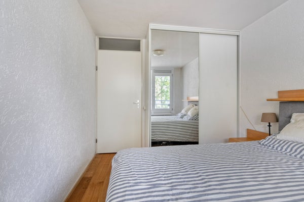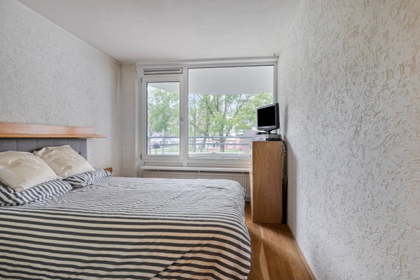 - De portiekflat heeft een woonoppervlakte van 87 m² en beschikt over 3 kamers, waarvan 2 slaapkamers;