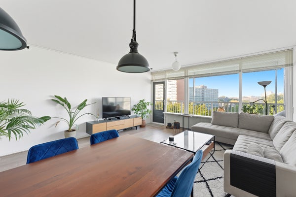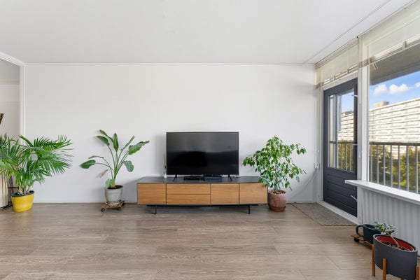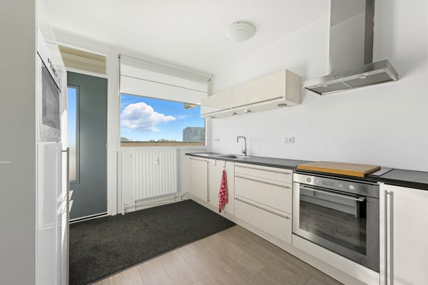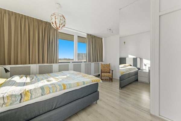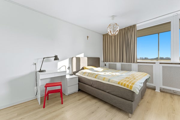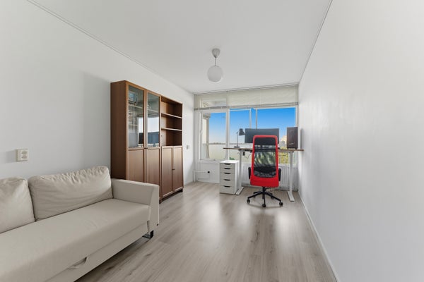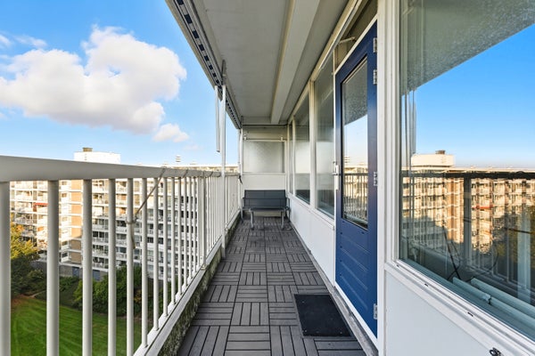 - De galerijflat heeft een woonoppervlakte van 84 m² en beschikt over 3 kamers, waarvan 2 slaapkamers;