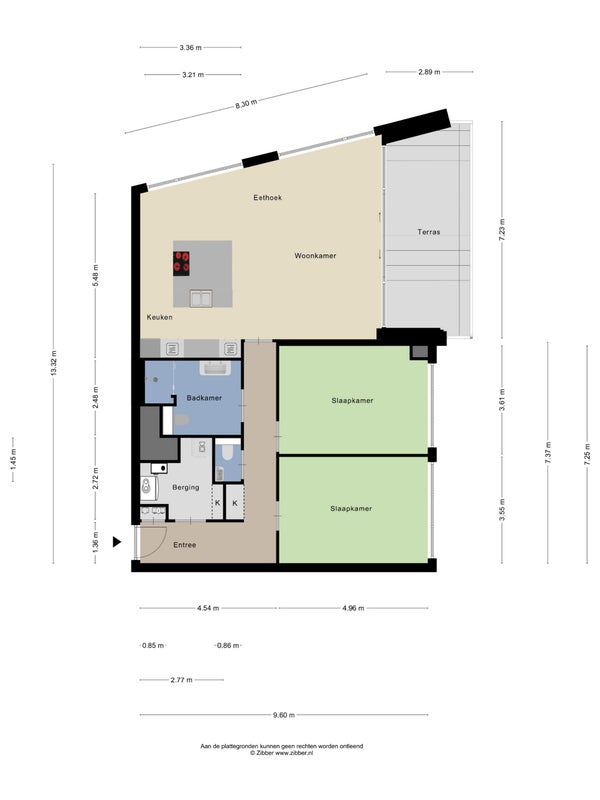 • De galerijflat heeft een woonoppervlakte van 117 m² en beschikt over 3 kamers, waarvan 2 slaapkamers;