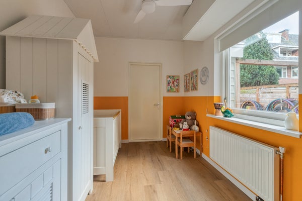 De woning is aan de achterzijde uitgebouwd. Door de voormalige berging bij de woning te betrekken, zijn hier twee extra slaapkamers gerealiseerd, wat zorgt voor verrassend veel ruimte en flexibiliteit. De badkamer is stijlvol gerenoveerd en beschikt over een toilet, een modern wastafelmeubel en een comfortabele inloopdouche. De badkamer is bereikbaar via de hal.