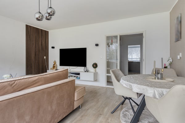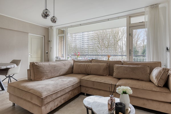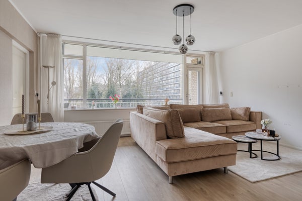 - De woonkamer beschikt over veel lichtinval en biedt toegang tot het ruime balkon gelegen op het...