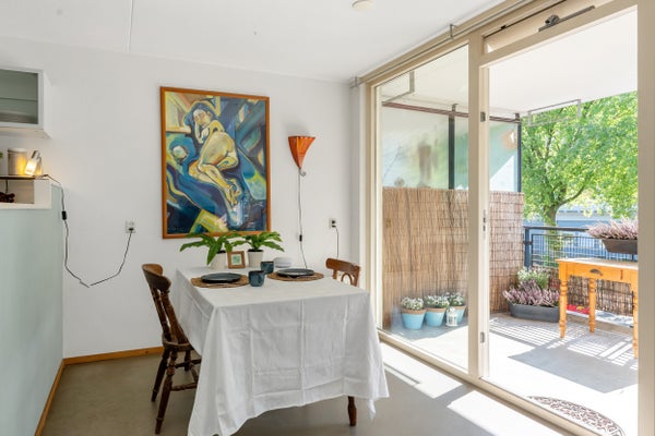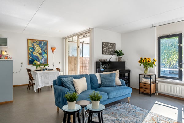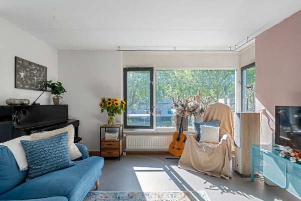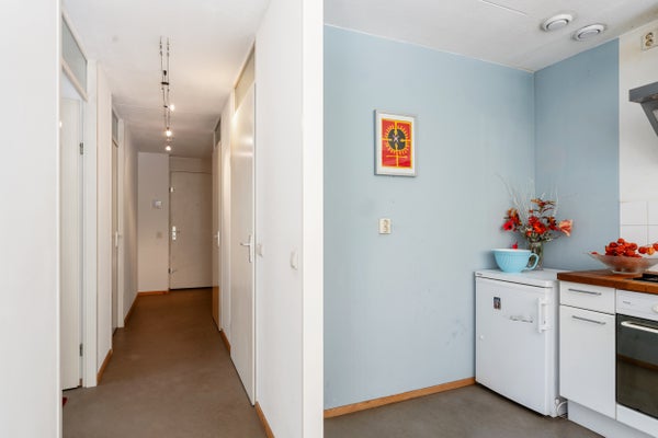 - De portiekflat heeft een woonoppervlakte van 77 m² en beschikt over 3 kamers, waarvan 2 slaapkamers;