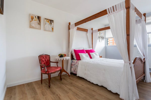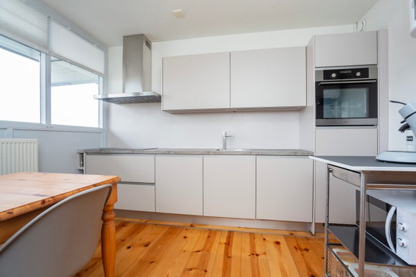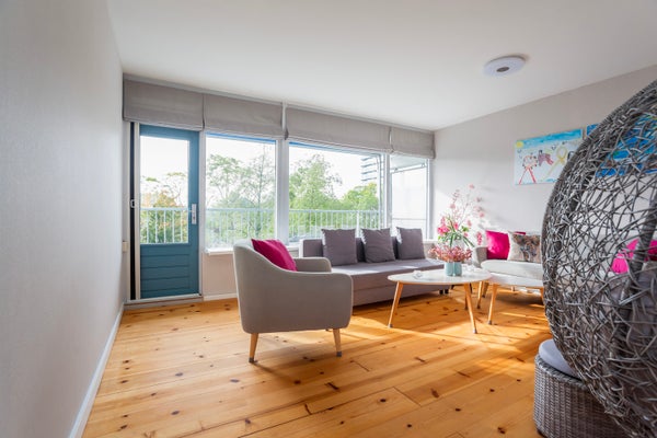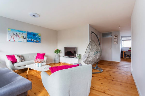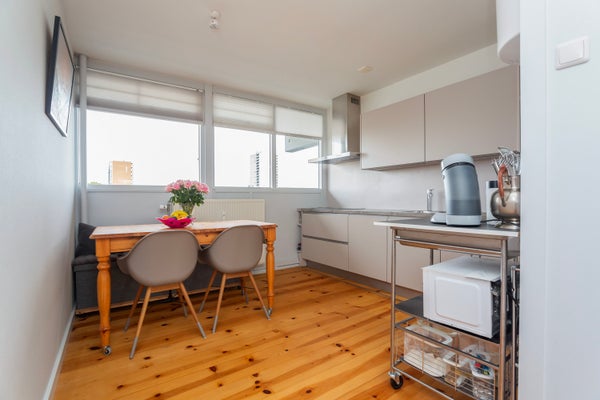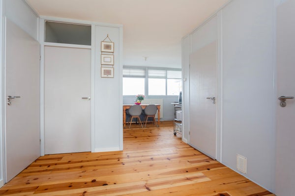 - De galerijflat heeft een woonoppervlakte van 84 m² en beschikt over 3 kamers, waarvan 2 slaapkamers;