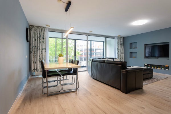 • De portiekflat heeft een woonoppervlakte van 121 m² en beschikt over 3 kamers, waarvan 2 slaapkamers;