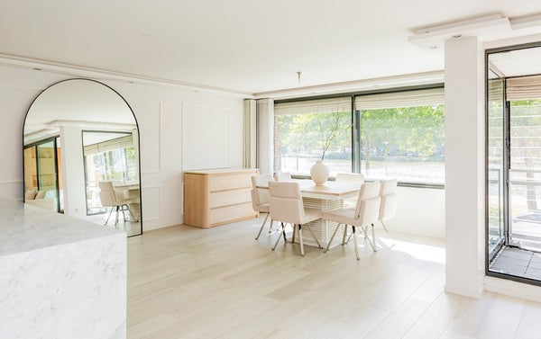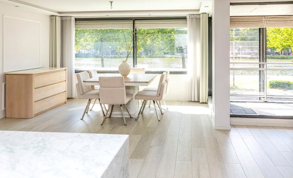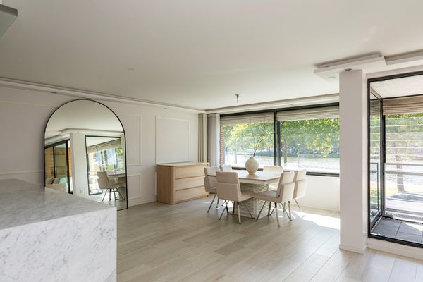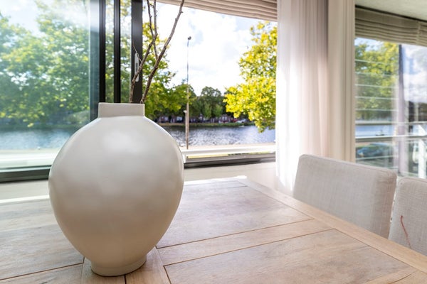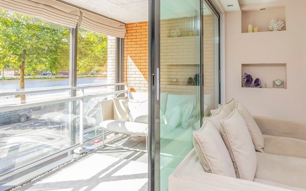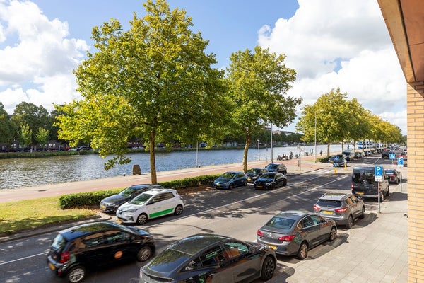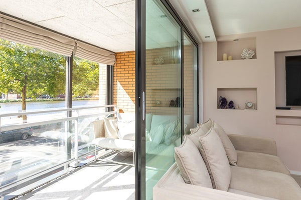 Een uniek gelegen, ruim en heerlijk licht drie-kamerappartement (voorheen vier kamers) met balkon/serre en een fenomenaal uitzicht over het vaarwater!