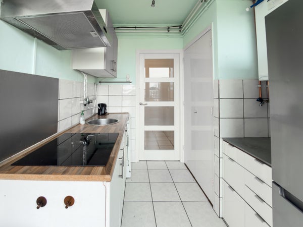 - De portiekflat heeft een woonoppervlakte van 56 m² en beschikt over 3 kamers, waarvan 2 slaapkamers;