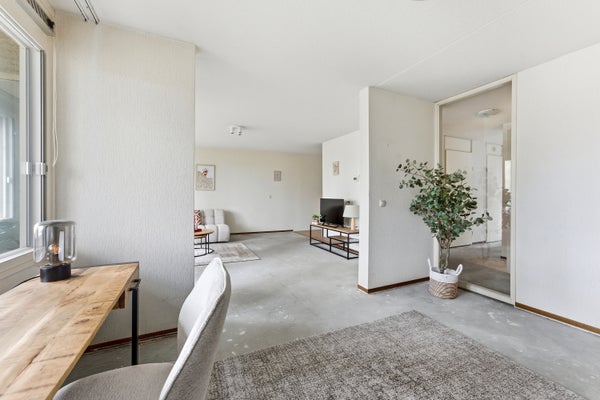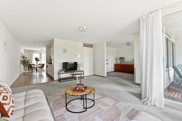 - De galerijflat heeft een woonoppervlakte van 90 m² en beschikt over 3 kamers, waarvan 2 slaapkamers;