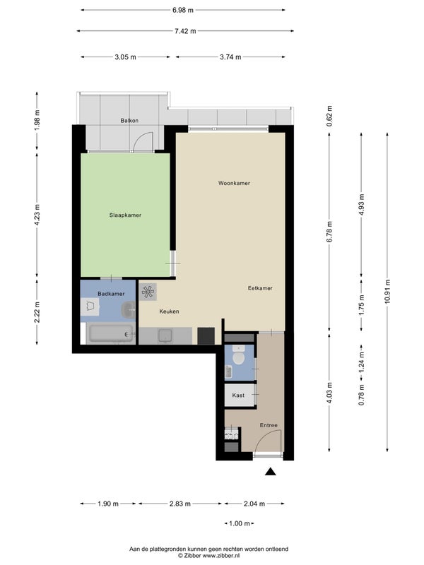 - De galerijflat heeft een woonoppervlakte van 55 m² en beschikt over 2 kamers, waarvan 1 slaapkamer;