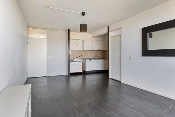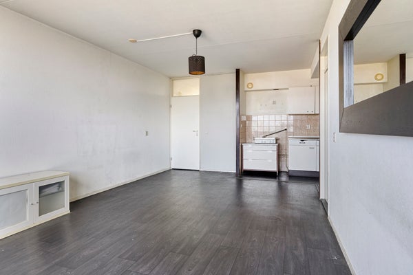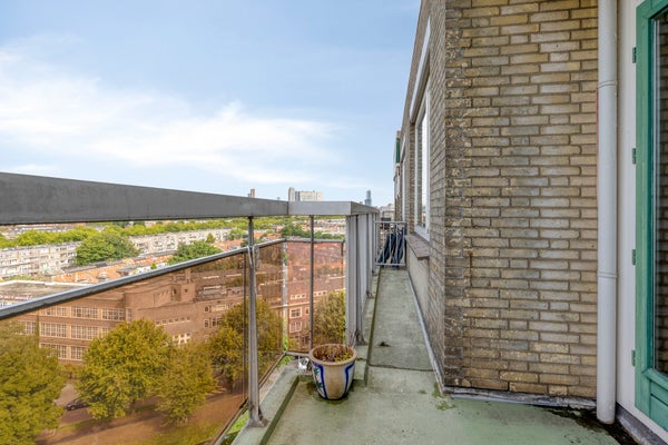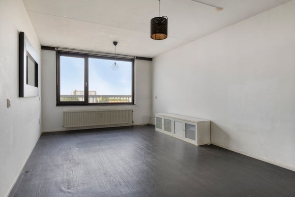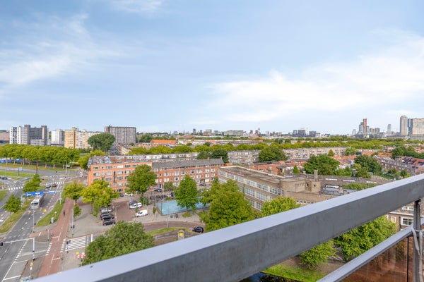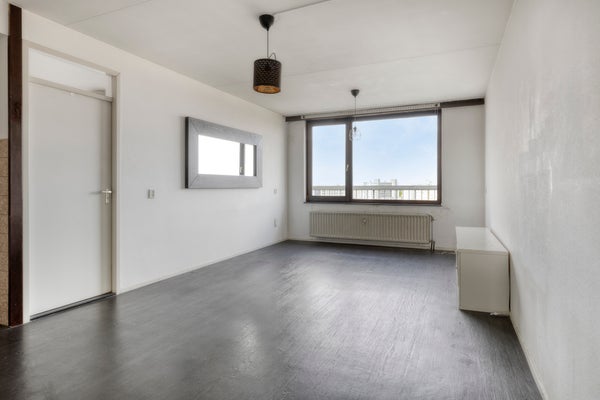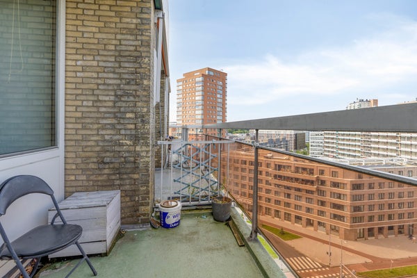 Bent u op zoek naar een licht appartement met een prachtig uitzicht? Dan is dit 2-kamer appartement op de 10e verdieping ideaal. Bij binnenkomst vindt u een hal met meterkast en toiletruimte. De ruime woonkamer valt op door de grote ramen die veel lichtinval bieden en toegang geven tot de keuken en slaapkamer. De keuken is voorzien van een recht keukenblok. De slaapkamer heeft directe toegang tot het westelijk gelegen balkon, perfect voor ontspanning en genieten van de zon. De half betegelde badkamer bevat een ligbad en aansluitingen voor wasmachine en droger. Naast een eigen overdekte parkeerplaats, bevindt zich een berging van circa 13 m². De centrale ligging nabij het winkelcentrum, metrostation en recreatiegebied maakt deze woning zeer aantrekkelijk.