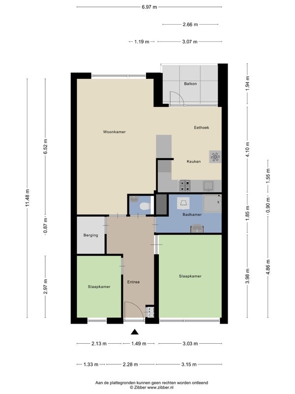 - De galerijflat heeft een woonoppervlakte van 75 m² en beschikt over 3 kamers, waarvan 2 slaapkamers;