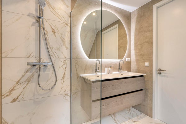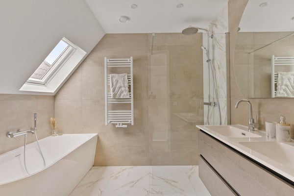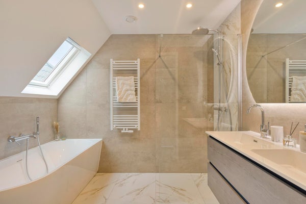 - Luxe badkamer met ligbad, inloopdouche en dubbele wastafel