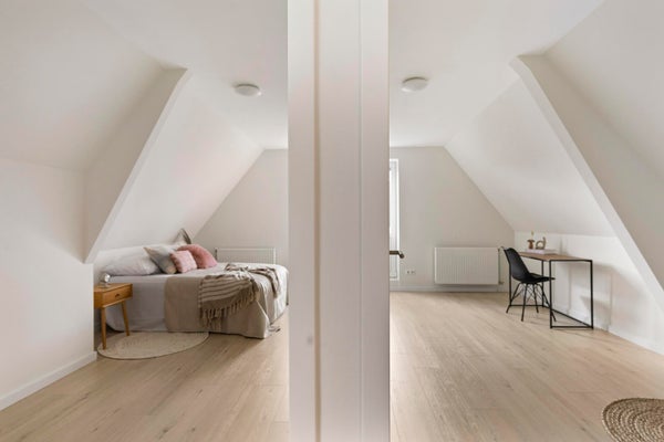 Op de derde verdieping bevinden zich drie zeer ruime slaapkamers. Flexibel in te richten als master bedroom, kinderkamer of werkkamer. De luxe badkamer beschikt over een ligbad, inloop regendouche, dubbele wastafel met meubel, toilet en een raam voor daglicht en natuurlijke ventilatie. Vanuit een van de kamers aan de achterkant van de woning stapt u zo het balkon op, gelegen op het zuiden, een fijne plek voor een kop koffie in de ochtend of een borrel in de namiddagzon.