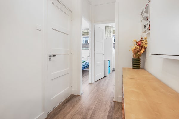 - De portiekwoning heeft een woonoppervlakte van 74 m² en beschikt over 3 kamers, waarvan 2 slaapkamers;