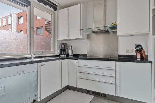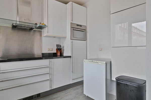 - De keuken met een keukenblok in hoekopstelling is voorzien van diverse inbouwapparatuur, zoals een inductiekookplaat, afzuigkap, combimagnetron, koelkast, vriezer en vaatwasser;
