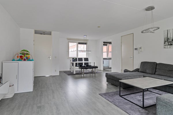 Bij binnenkomst in het appartement, bereikt u de hal met toegang tot de royale woonkamer. De zeer ruime woonkamer voelt licht en open aan en vormt het hart van de woning. Vanuit hier bereikt u zowel de keuken als het balkon. De keuken, uitgevoerd in een praktische hoekopstelling, is uitgerust met diverse inbouwapparatuur. Het balkon, bereikbaar via openslaande deuren en gelegen op het zuidwesten. In de gang bevindt zich een geheel betegelde toiletruimte, een handige berg-/wasruimte en twee slaapkamers. Slaapkamer 1 is ruim van opzet en biedt direct toegang tot het tweede, knusse balkon, eveneens op het zuidwesten gelegen. Slaapkamer 2 ligt aan de galerijzijde. De goed onderhouden badkamer is volledig betegeld en voorzien van een ligbad met douche en een wastafelmeubel.