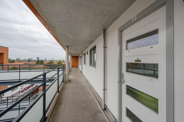 - De galerijflat heeft een woonoppervlakte van 84 m² en beschikt over 3 kamers, waarvan 2 slaapkamers;