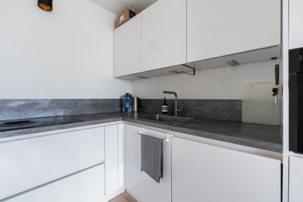 Keurige vernieuwde open keuken (2021) in L-opstelling welke voorzien is van een 4-pits inductie kookplaat met afzuigsysteem (Tesla), combi-oven en koel-vriescombinatie. De keuken is verder voorzien van een fraai en modern werkblad. Verder is deze ruimte afgewerkt met een nette laminaatvloer.