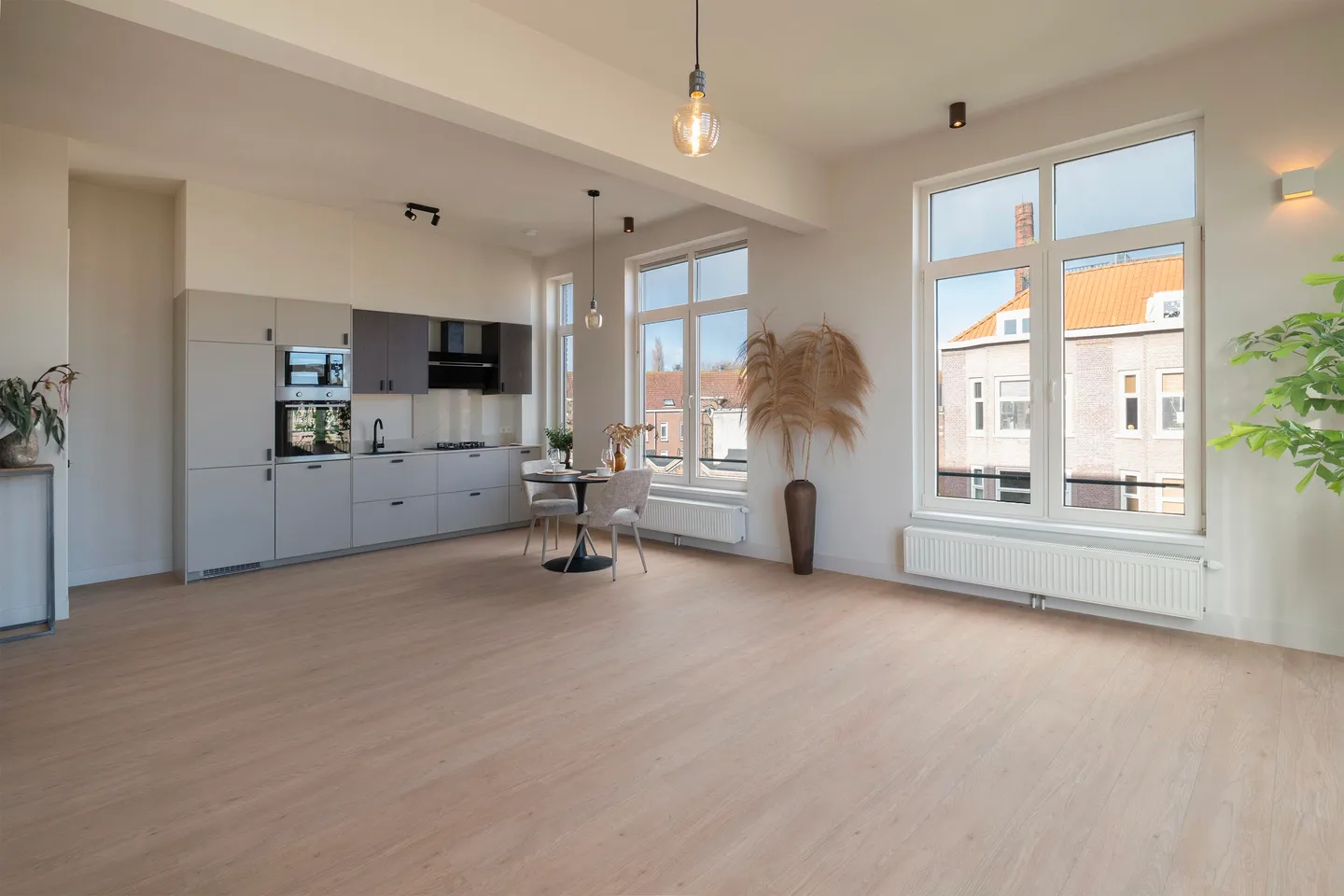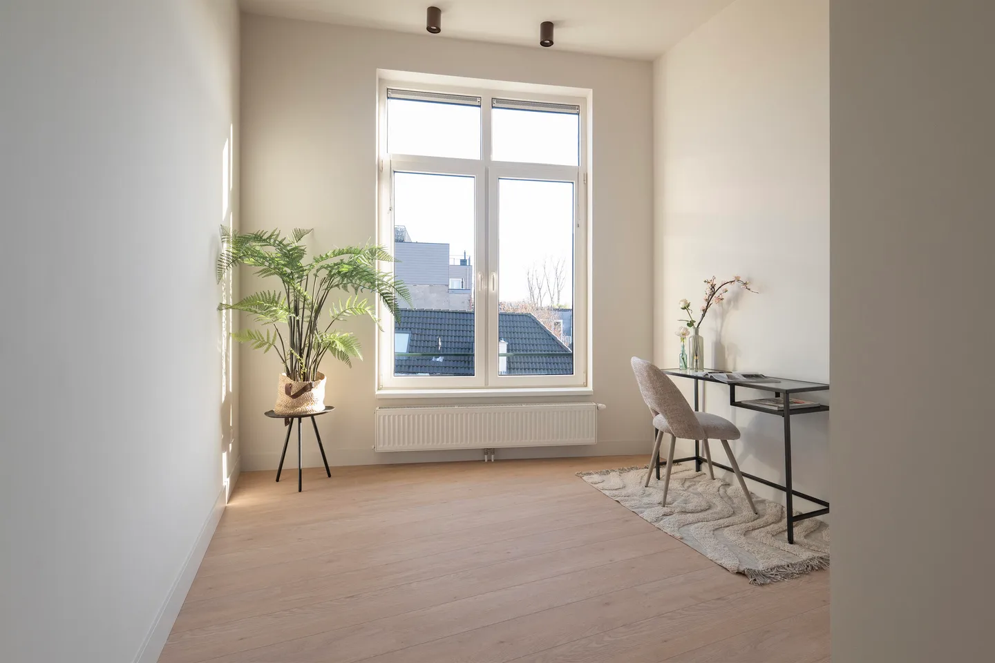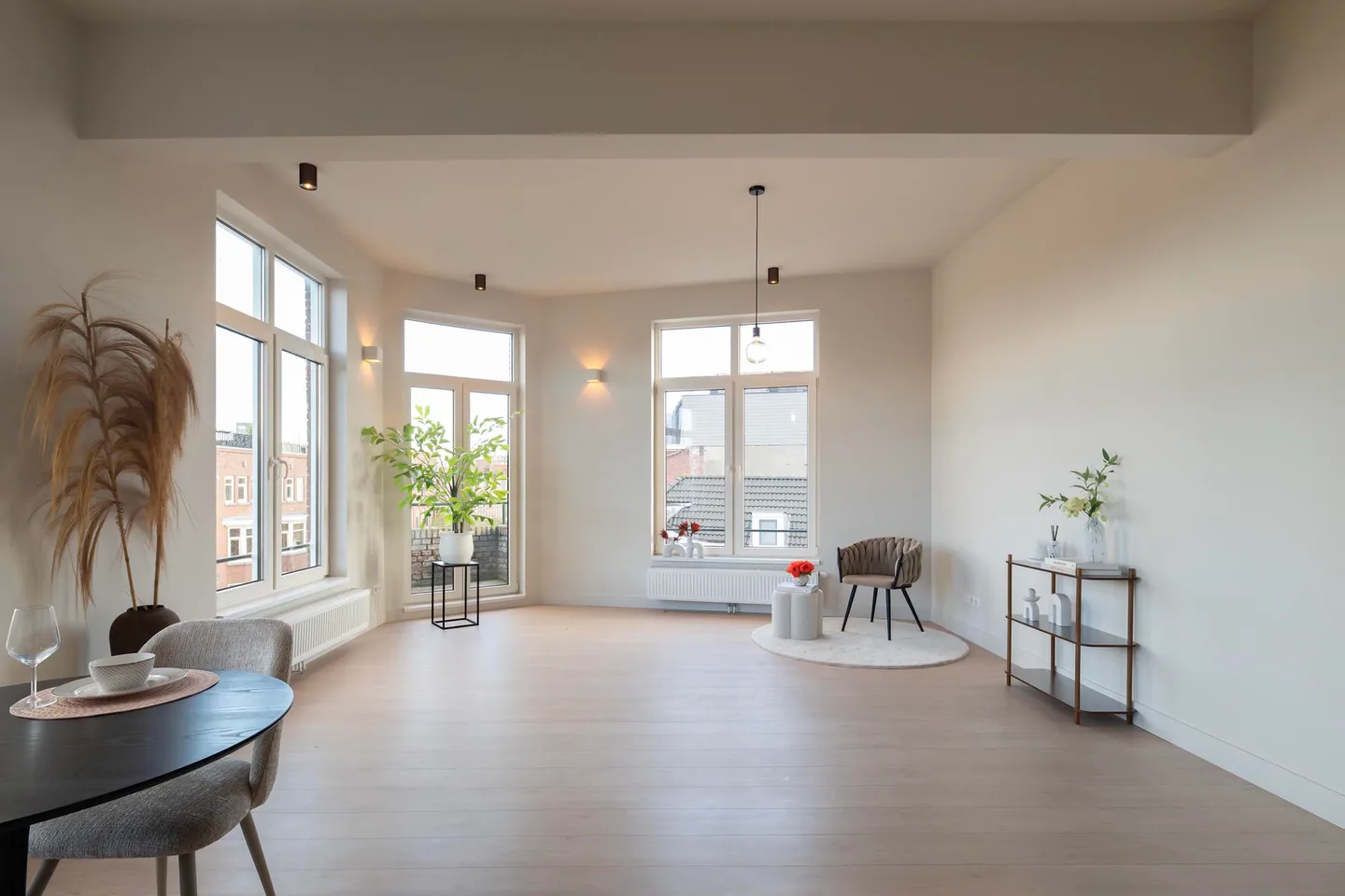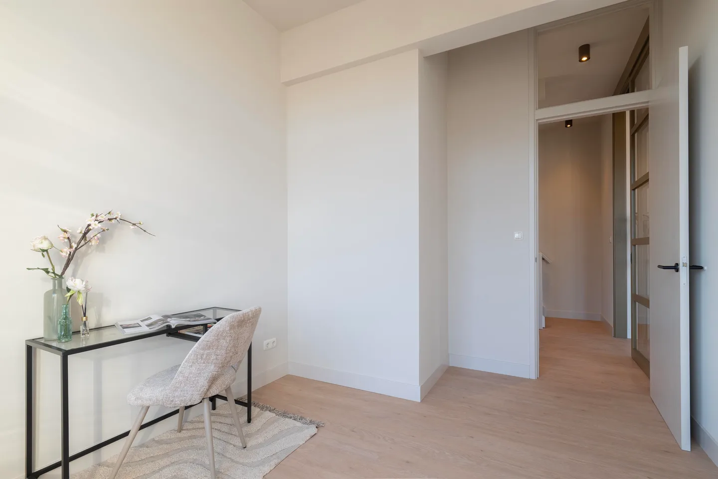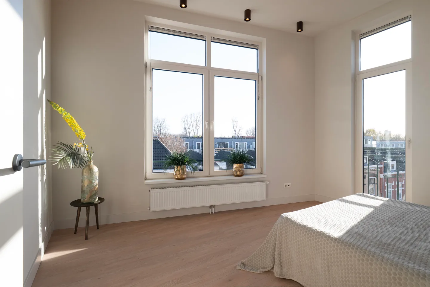 Aan de Paradijslaan in Nieuw-Crooswijk ligt een prachtig, volledig gerenoveerd 3-kamer hoekappartement met een royaal dakterras. Dit instapklare appartement biedt een moderne inrichting en veel natuurlijk licht dankzij de hoekligging. Het maakt deel uit van een complex dat in ****** is gerenoveerd. In de lichte woonkamer met grote ramen voel je direct een warme, open sfeer. De keuken is uitgerust met moderne inbouwapparatuur. De unieke dakterras biedt een prachtig uitzicht over de Rotterdamse skyline. Met twee volwaardige slaapkamers, een multifunctionele ruimte, en een moderne badkamer is dit appartement ideaal. Gelegen nabij het Kralingse Bos en het centrum, met goede bereikbaarheid van openbaar vervoer en snelwegen.
