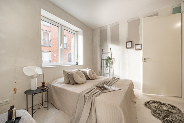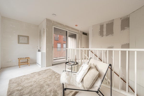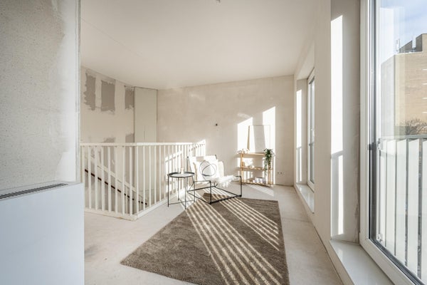 De woning is grotendeels casco opgeleverd, met een afgewerkte badkamer en toilet. Dit betekent dat je alle vrijheid hebt om de ruimtes volledig naar eigen smaak in te richten en af te werken. Dankzij de hoge plafonds, het vele licht en de moderne uitstraling voelt het appartement bijzonder ruim en sfeervol aan. Helemaal klaar om er iets van jezelf van te maken.