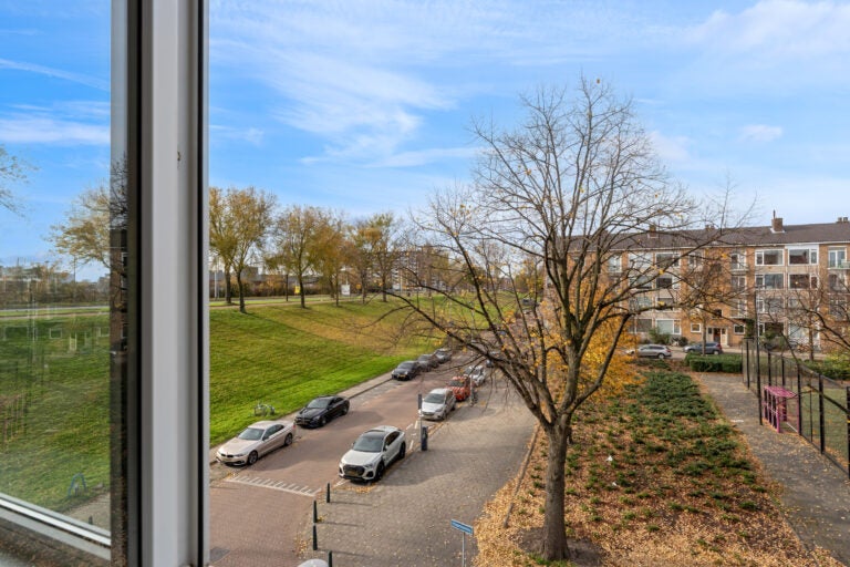 Ontdek deze ruime en lichte 3-kamer hoekwoning met een vrij uitzicht. De woning heeft een unieke hoekligging, waardoor je geniet van meer privacy en gemakkelijk lichtinval. Gelegen op eigen grond, biedt deze woning 56 m² woonoppervlak en heeft een indeling met een hal, toilet en een eenvoudige dichte keuken. Je vindt er een achter-zijkamer en een achterkamer die en-suite zijn, samen met een woonkamer die toegang biedt tot het westgeoriënteerde balkon van 3 m². De doucheruimte is voorzien van een wastafel en douche. Op de 2e verdieping ligt een berging van 3 m². De woning is onderdeel van een actieve VvE met een maandbijdrage van € 104,23. Energielabel G, verwarming en warm water via elektrische kachels en een geiser. Deze woning heeft potentie voor modernisatie op een centrale locatie, dichtbij openbaar vervoer en winkels.