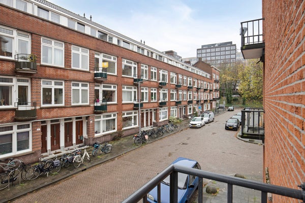 Bij binnenkomst op de eerste verdieping komt u in de hal, met een dichte keuken die uitkomt op het balkon. De ruime slaapkamer aan de achterzijde biedt toegang tot een groter balkon. De woonkamer aan de voorkant heeft een tweede balkon en komt met een tweede slaapkamer die ideaal is als werkkamer. Op de derde verdieping bevindt zich de grootste slaapkamer met wastafel, inbouwkast en inloopdouche. Dit appartement is gelegen in een charmante buurt met uitstekende bereikbaarheid en leuke eetgelegenheden.