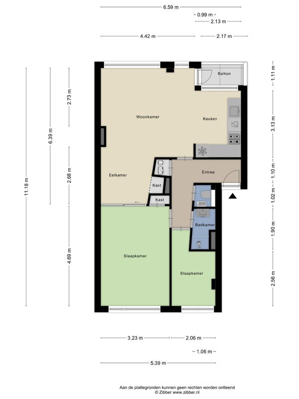 - De galerijflat heeft een woonoppervlakte van 64 m² en beschikt over 3 kamers, waarvan 2 slaapkamers;