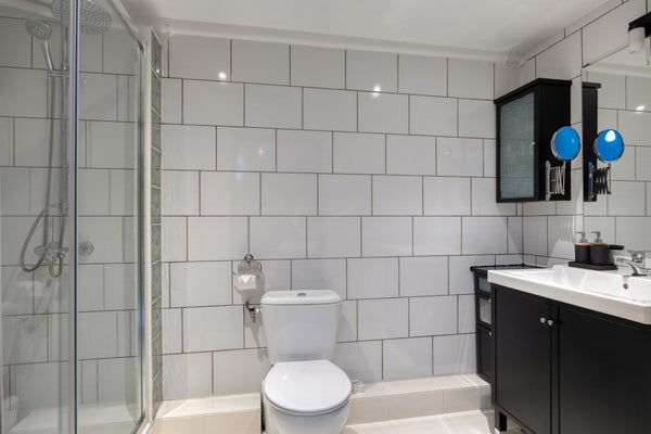 Er zijn twee slaapkamers, waarvan de hoofdslaapkamer in het souterrain ligt en zeer koel blijft in de zomer. De badkamer is modern en biedt een douche, wastafel en extra toilet.