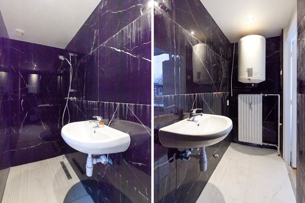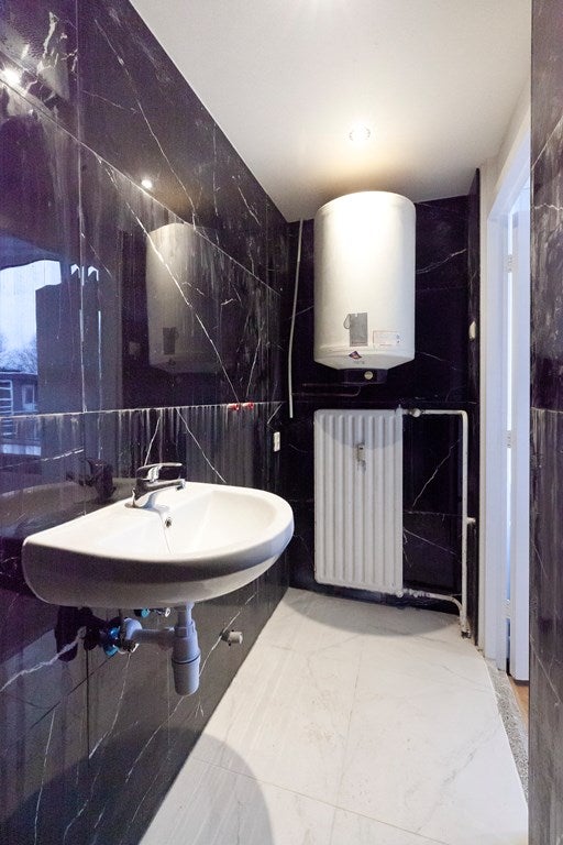 • Badkamer is functioneel en v.v. een douche en een wastafel (hier hangt ook de boiler)