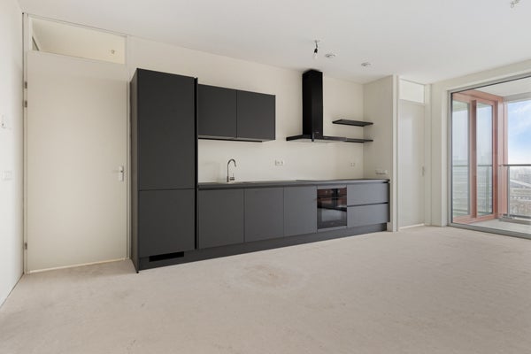 Middels de entree/hal krijgt u toegang tot de verschillende vertrekken van de woning. Via de entree krijgt u toegang tot de half betegelde separaat toiletruimte. De woonkamer is gelegen aan de voorzijde van de woning en staat in open verbinding met de keuken. De nette en moderne keuken is voorzien van verschillend inbouwapparatuur. Via de woonkamer krijgt u toegang tot het balkon welke is gelegen op het westen met prachtig uitzicht over Rotterdam. Via de gang krijgt u toegang tot de volledig betegelde badkamer, de ruime slaapkamer en de berging.