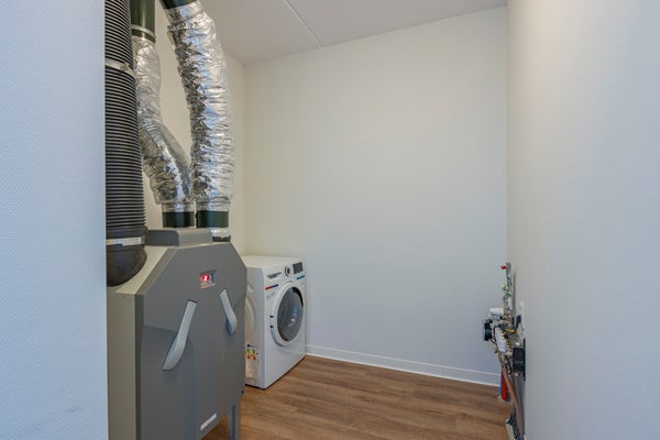 This furnished and decorated three-room apartment on the 3rd floor combines functionality with comfort and offers two bedrooms, a bathroom with a shower cabin and washbasin unit, a bright living room with French doors that open to a private west-facing balcony where you can enjoy the outdoors. The luxurious kitchen is equipped with built-in appliances such as a dishwasher, combination microwave, induction hob, etc., contributing to an inviting atmosphere for cozy evenings and hospitable dinners. Additionally, the apartment features a spacious hallway with a toilet, a meter cupboard, and an indoor storage room with a heat recovery installation and washing machine connection. The apartment is equipped with a tasteful PVC floor with underfloor heating, ensuring a warm and comfortable living environment. The apartment also includes a separate storage room in the basement, as well as a communal bicycle storage area, and a private parking space is available for purchase (based on availability).